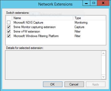 - Просмотр расширений виртуального коммутатора Hyper-V