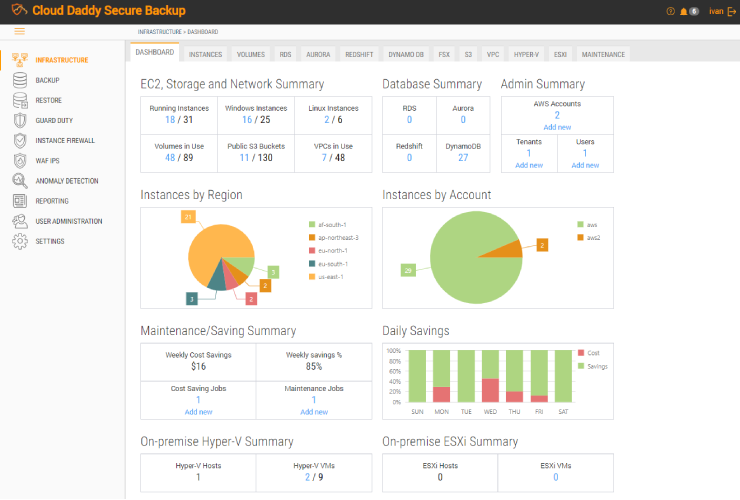 Разработка системы была выполнена чуть раньше срока и полностью удовлетворила потребности Заказчика. Cloud Daddy Secure Backup — это специально созданное для Amazon Web Services решение для безопасного резервного копирования. Продукт защищает следующие объекты: EC2 instance, EBS volumes, базы данных RDS и Aurora, а также кластеры Redshift. При этом, помимо стандартного выполнения резервного копирования по расписанию и восстановления продукт поддерживает множество функций, такие как восстановление отдельных файлов, кросс региональное копирование и т.д.