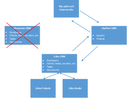 - Реализация всего функционала SkyPoint CRM на платформе Zoho.