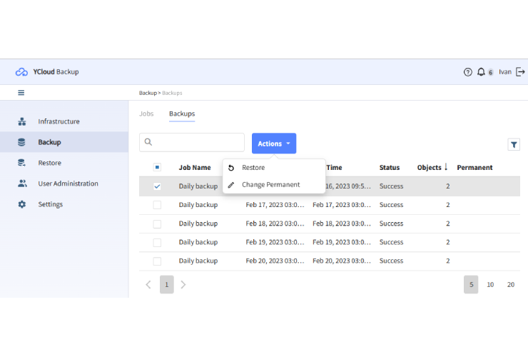 YCloud Backup - это система резервного копирования виртуальных машин, работающих в Yandex Cloud. В продукте реализованы как стандартные функции резервного копирования по расписанию, так и более специфичные: восстановление единичных файлов из бэкапа, оценка ежемесячной стоимости хранения резервных копий и др. В качестве базового механизма для резервного копирования используются снимки виртуальных дисков (snapshots). Использование нативного механизма делает решение более надежным. Снимки дисков хранятся в Yandex Managed Service for YDB, реплицируются в нескольких зонах доступности и шифруются на уровне базы данных.
